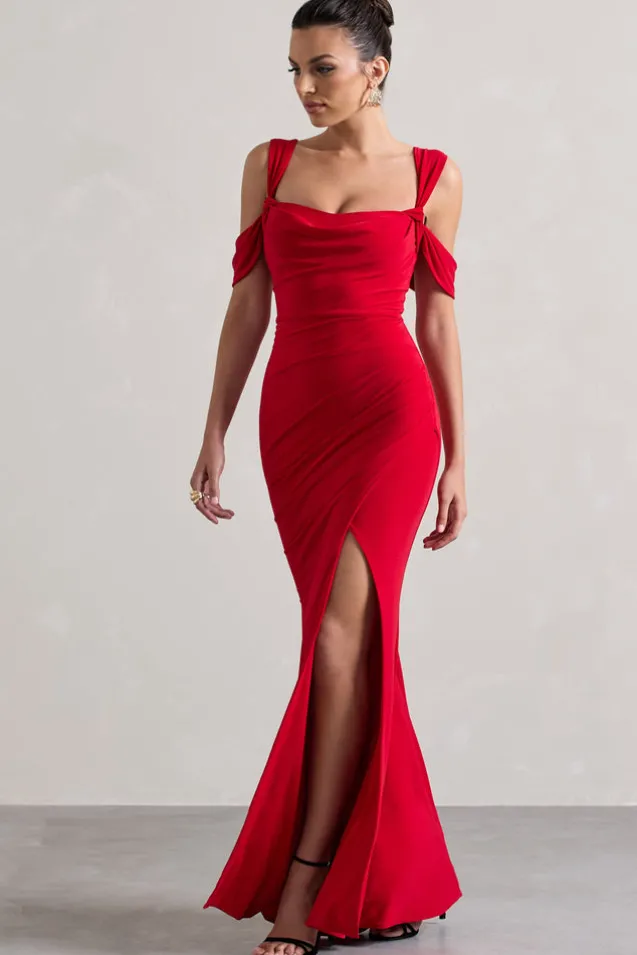 Amoura | Red Square-Neck Draped Wrap Maxi Dress