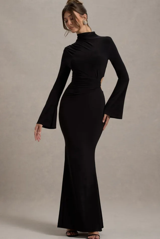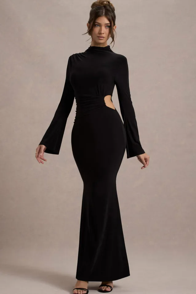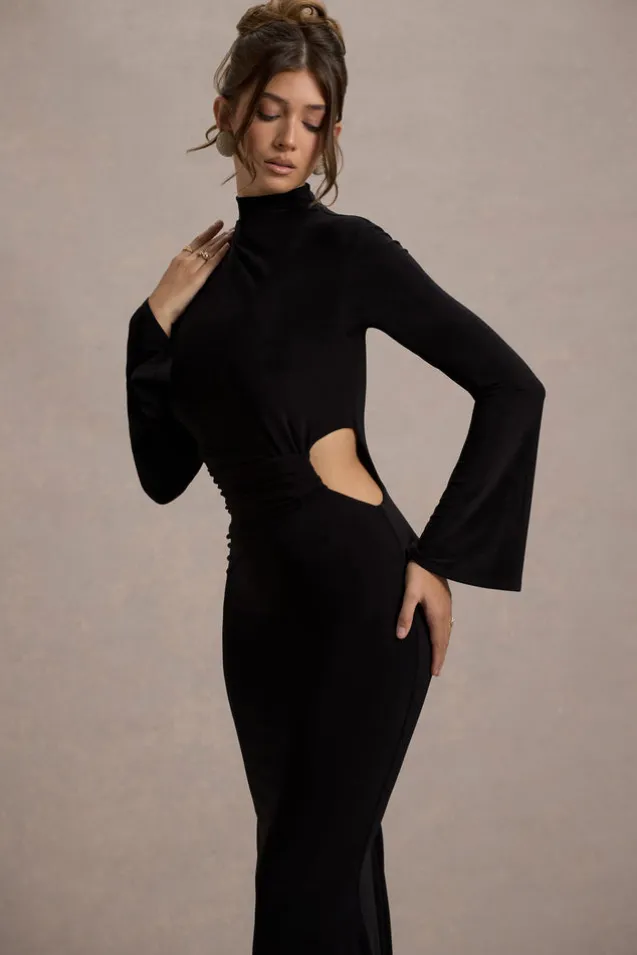 Anderson | Black High-Neck Cut-Out Maxi Dress