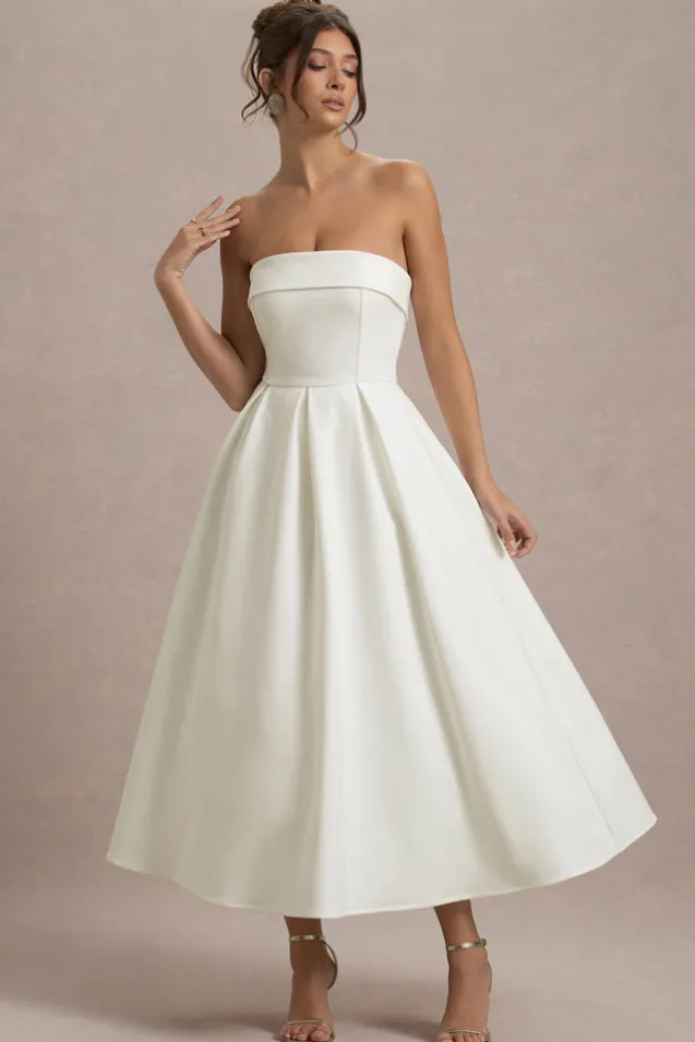 Annalise | Ecru Bandeau Skater Midi Dress