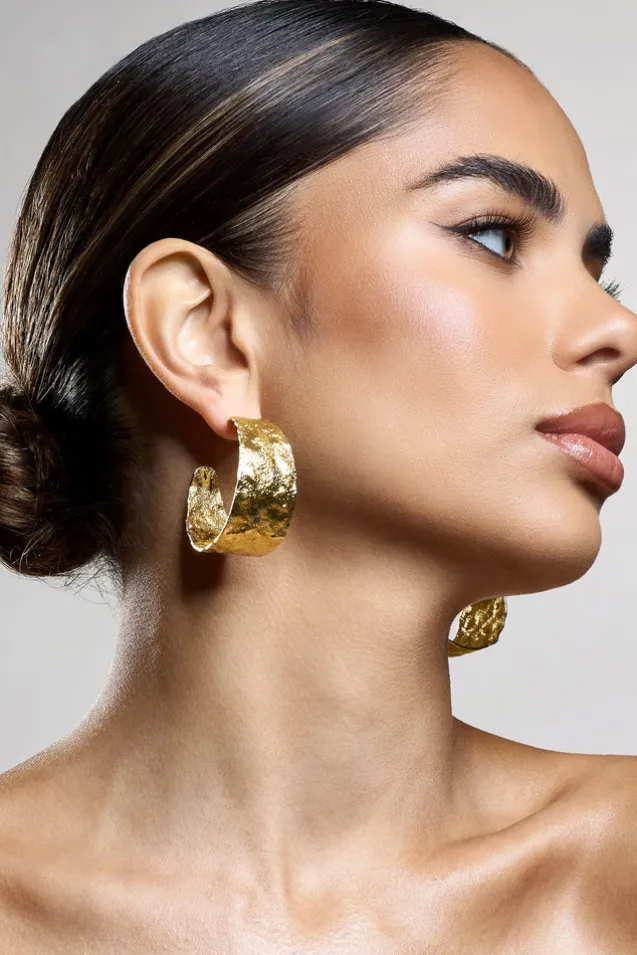 Crafted in a glistening textured gold, our Antigua hoop earrings are the perfect addition to your suitcase this holiday season.Features – Gold toned – Textured finish- Hoop design- Stud fastening Product Information Designed exclusively by Club L London Gold-toned brass (100% Brass)