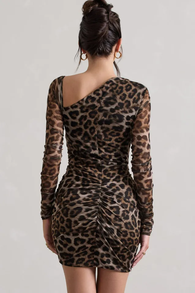 Aphrodite | Leopard Print Asymmetric Ruched Side Mini Dress
