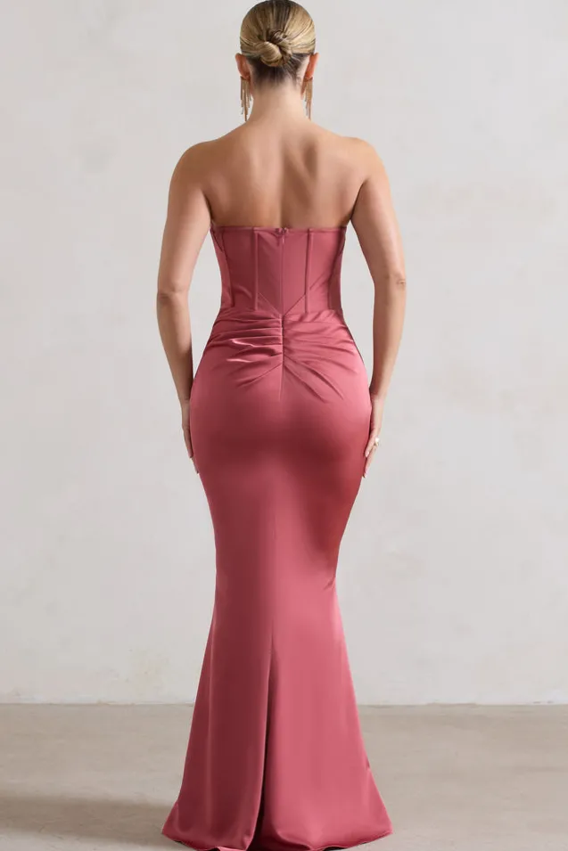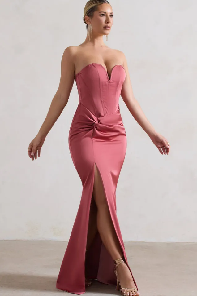 Ardelle | Rose Pink Satin Corseted Wrap Maxi Dress
