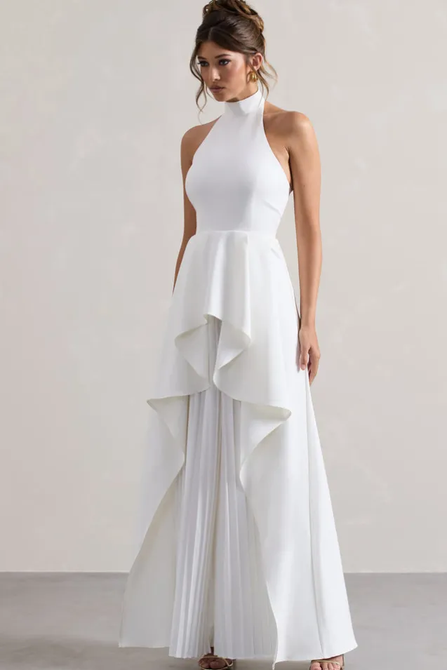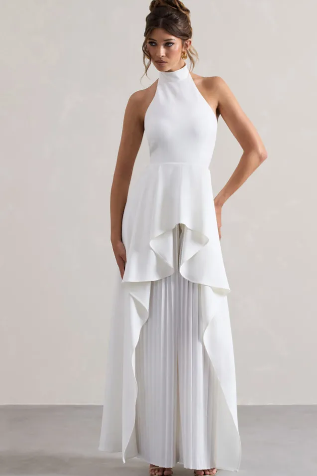 Ashwood | White Plisse High-Neck Cape Jumpsuit