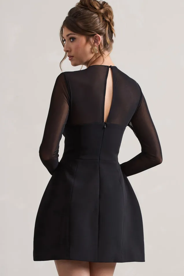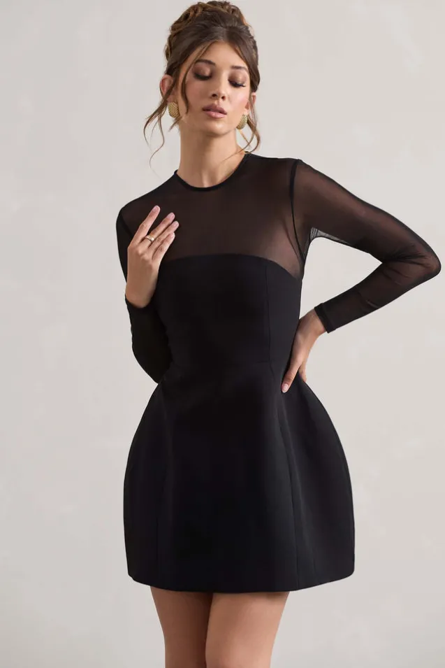 Austen | Black Mesh Long-Sleeve Mini Dress