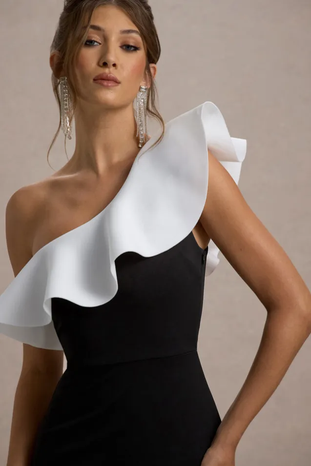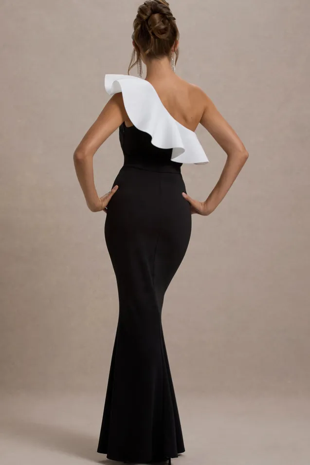 Berkley | Black u0026 White Ruffled One-Shoulder Maxi Dress