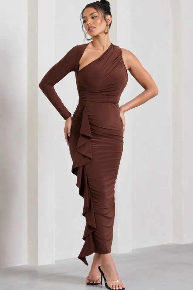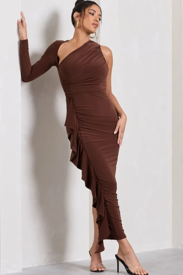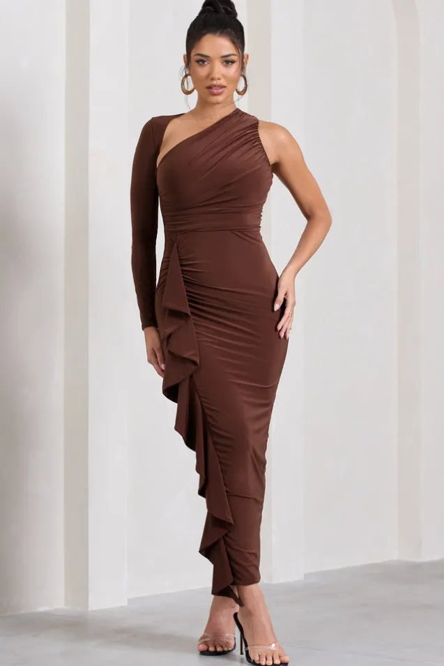 Compass | Brown One-Sleeved Cut-Out Maxi Dress With Ruffle