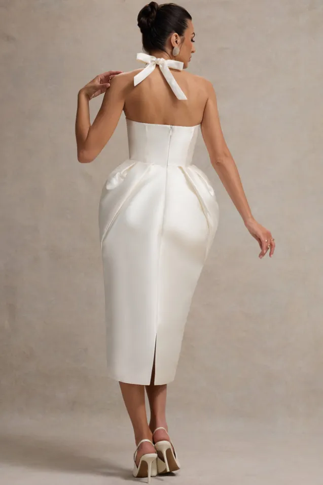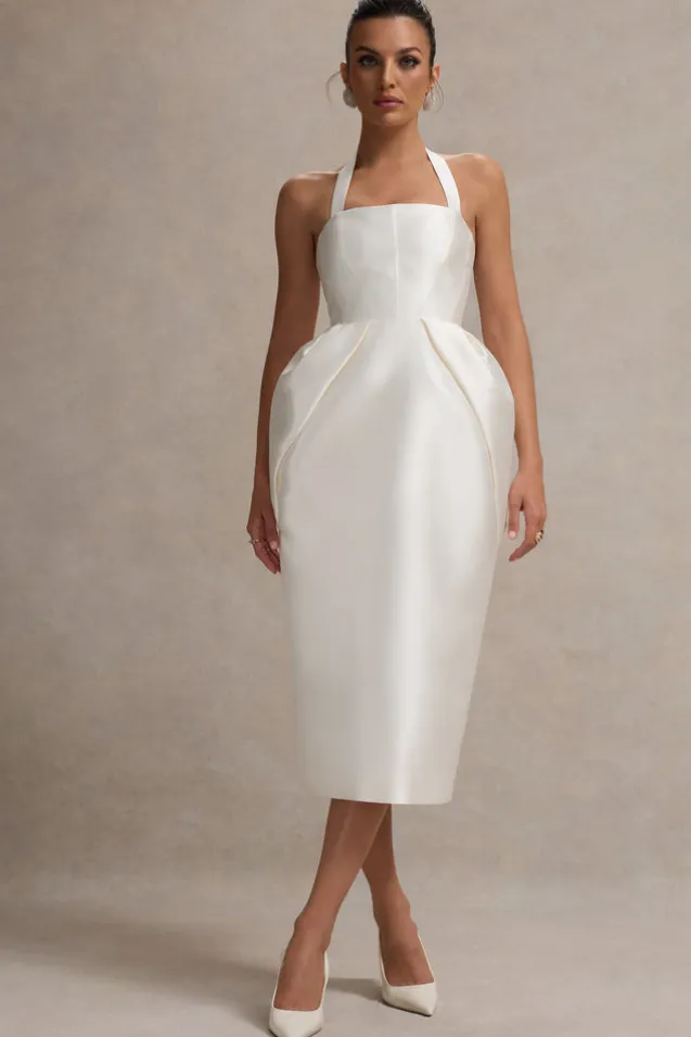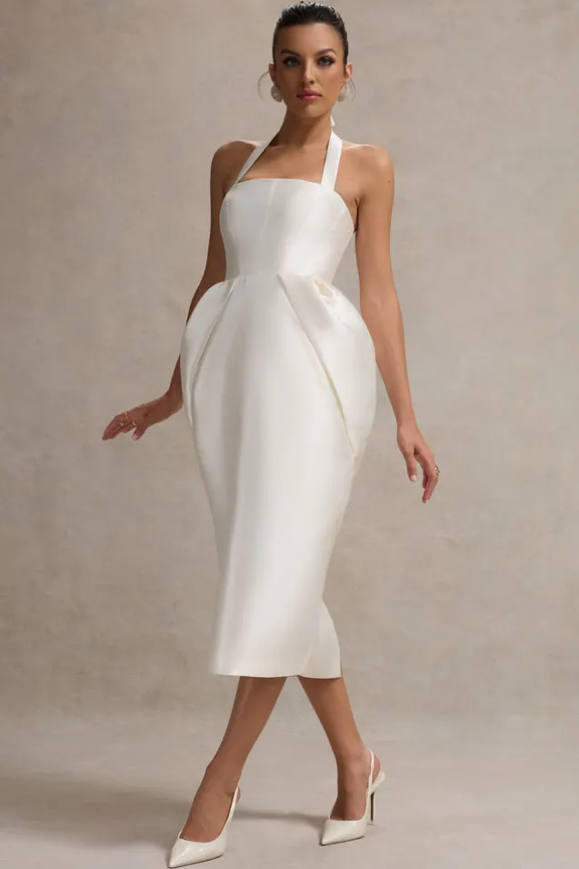 Cosetta | White Halter-Neck Midi Dress With Tulip Skirt