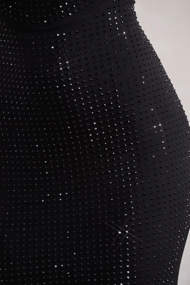 After dark glamour at it’s finest in our black maxi Costella. Arriving in our sculpting stretch jersey for an ultra flattering fit Costella is embellished with twinkling hotfix. Featuring a low cowl neckline and alluring cowl back, with a built in bandeau for extra support, this is the perfect occasion maxi to turn heads at your next event.Features – Premium hotfix on jersey- Bodycon fit- Built In bandeau- Cowl neckline- Cowl back- Adjustable cami straps- Invisible zip closure- Maxi length Sizing & Fit Model is 5’7″ and wears UK size 8/US size 4Product Information Designed exclusively by Club L London Fully lined with good stretch Premium hotfix on jersey in Black (95% Polyester, 5% Elastane) 157cm total length