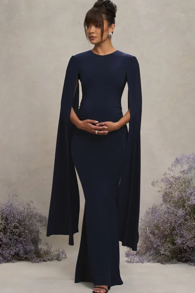 Divine Timing | Navy Maternity Maxi Dress With Cape Sleeves