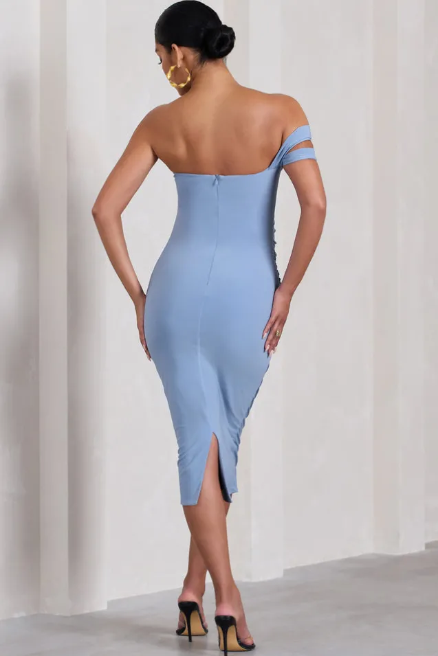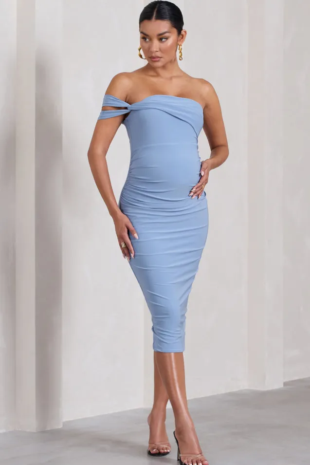 Eviana | Powder Blue Bodycon Sleeveless Twist Maternity Midi Dress