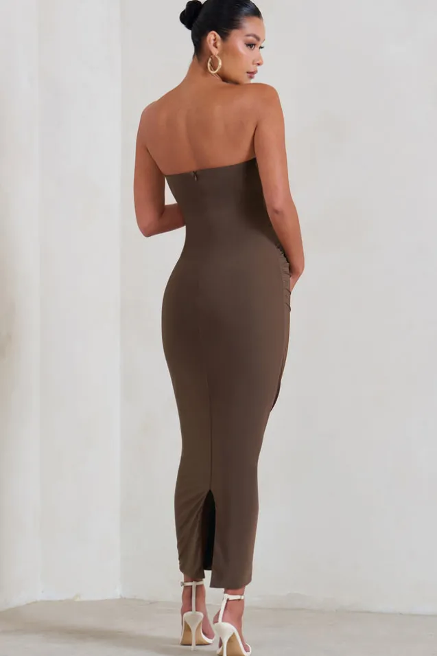 Our eye-catching Evita is the perfect midi dress for a mother-to-be, boasting a bodycon silhouette made from premium stretch jersey with a sweetheart neckline and a twisted knot detail. Finish this brown maternity dress with gold accessories for an unforgettable baby shower look.Features- Premium stretch jersey- Sweetheart neckline- Twist detail- Bodycon fit- Bump ruching- Invisible zip closure- Midi lengthSizing & FitModel is 5’8.5 and wears UK size 8/US size 4Product InformationDesigned exclusively by Club L LondonDouble layered with excellent stretchPremium jersey in Chocolate Brown (95% Polyester, 5% Elastane)120cm total length