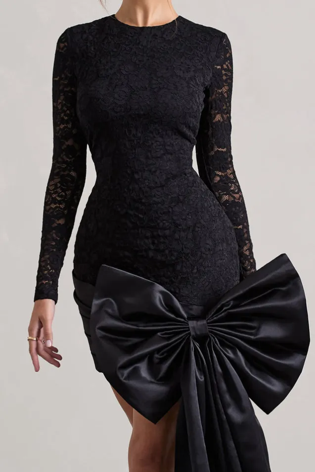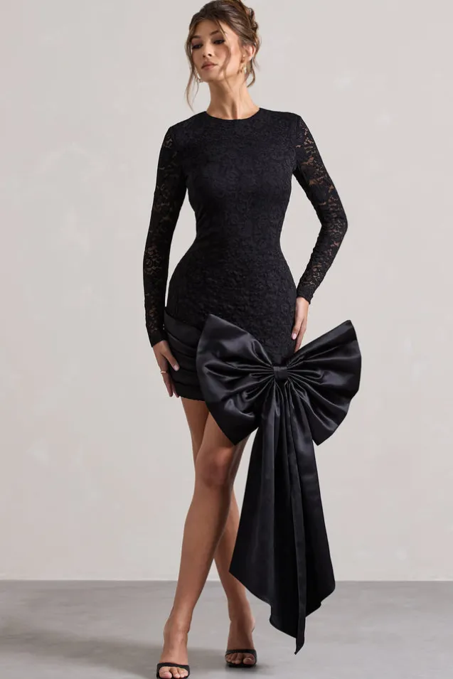 Evry | Black Lace Long-Sleeve Mini Dress With Oversized Satin Bow