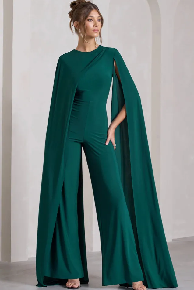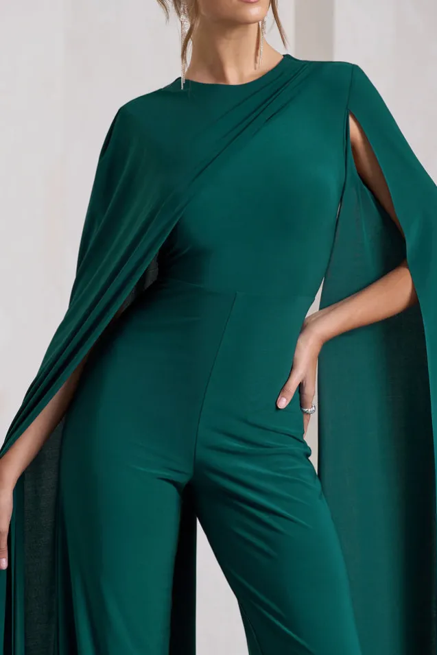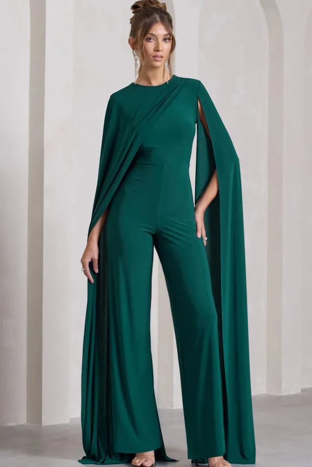 Harley | Bottle Green Straight-Leg Jumpsuit With Cape Sleeves