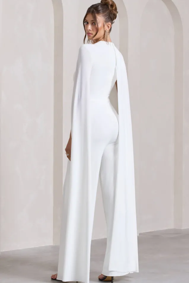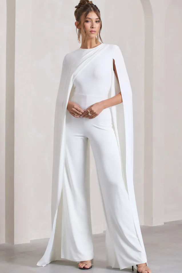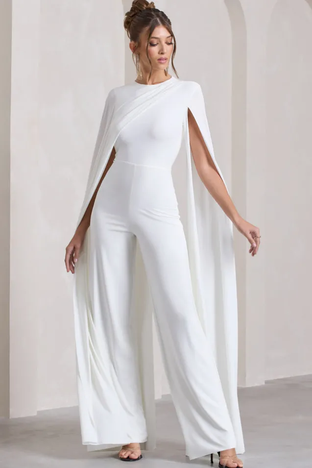 Harley | White Straight-Leg Jumpsuit With Cape Sleeves
