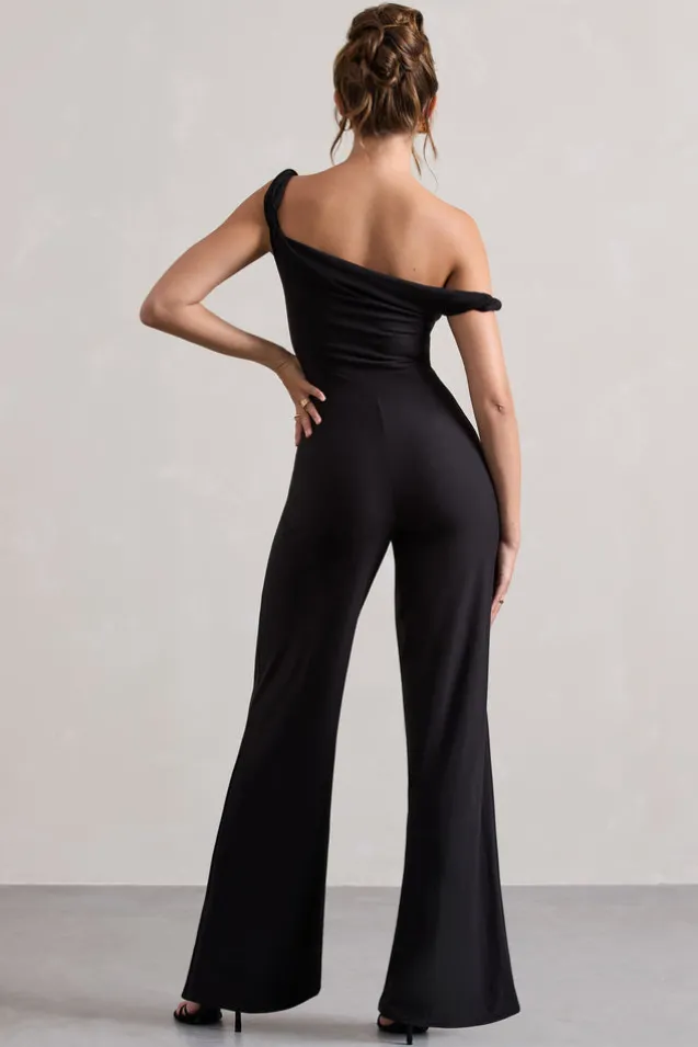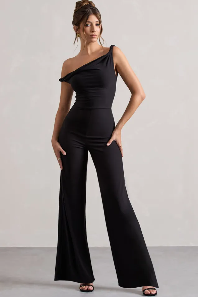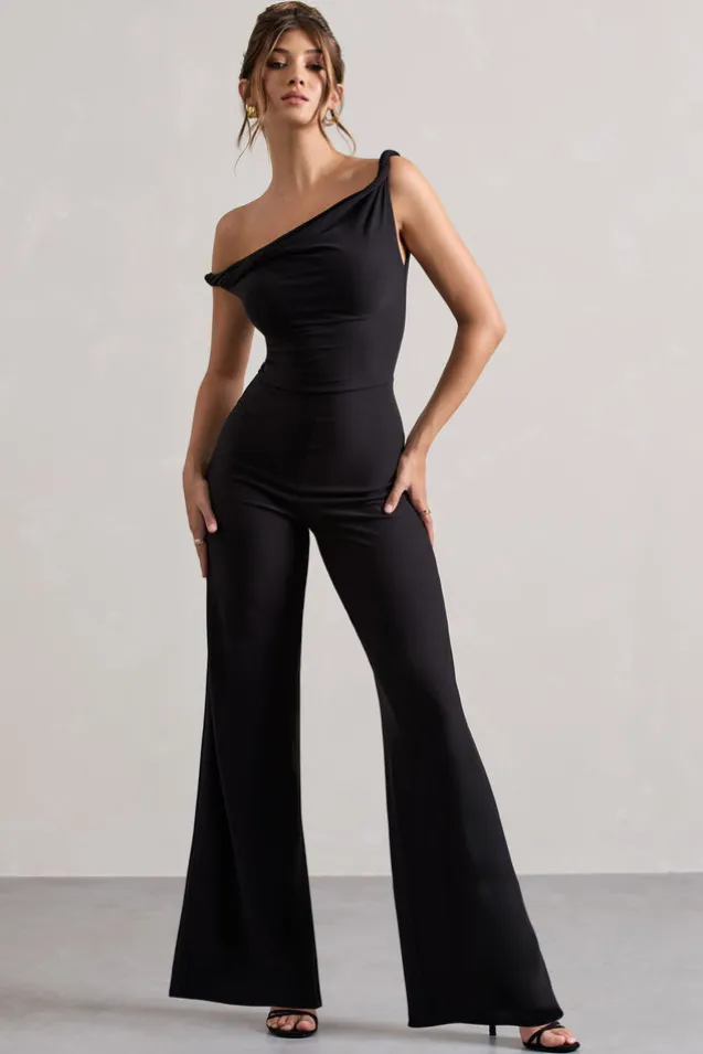 Hayes | Black Twisted Asymmetric Wide-Leg Jumpsuit