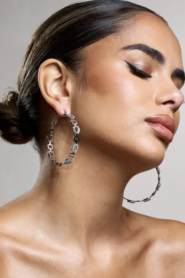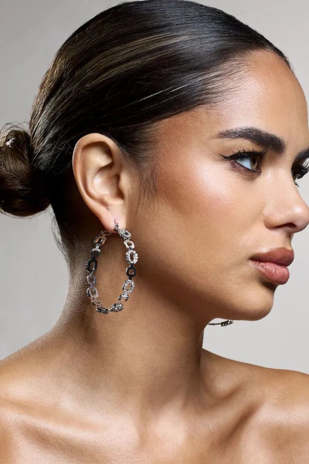 Interlinked | Silver Diamante Chain Hoop Earrings