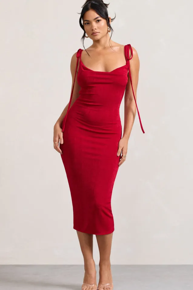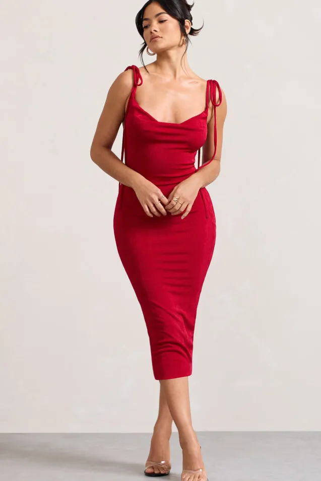 Irina | Red Cowl-Neck Bodycon Midi Dress