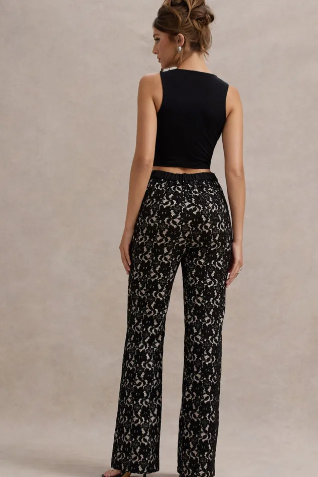 The perfect combination of romance and tailoring is our latest trousers Jordanne. Designed in a premium crepe and feminine black lace, these flared-leg trousers feature an elasticated waist band for the perfect fit. Style Jordanne with our Kennedy blazer for the ultimate sophisticated chic look.Features – Premium crepe and lace- High waist- Elasticated waistband – Belt loops- Hook and bar fastening – Zip closure- Flared-legSizing & Fit Model is 5’7 and wears UK size 8/US size 4Product Information Designed exclusively by Club L London Fully lined with no stretch Premium crepe and lace in Black (42% Viscose, 39% Cotton, 19% Elastane) 84cm total length