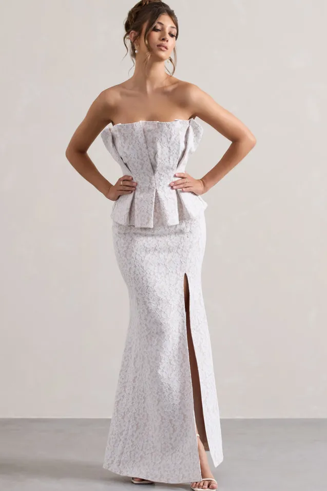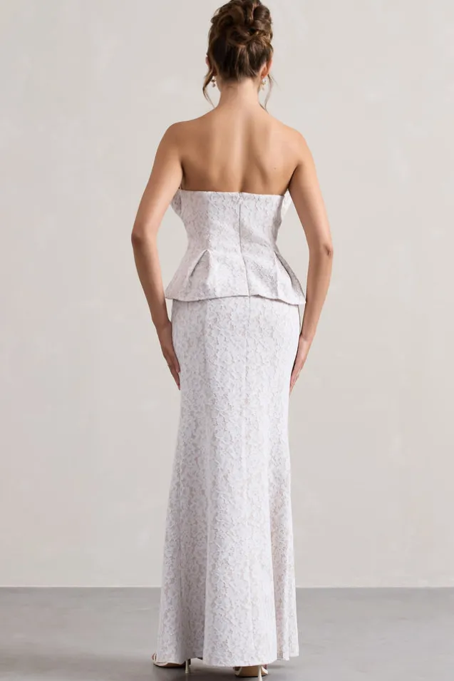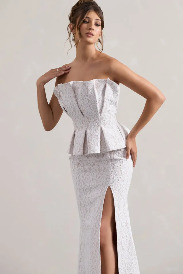 Kaleido | White Lace Strapless Ruffled Split Maxi Dress