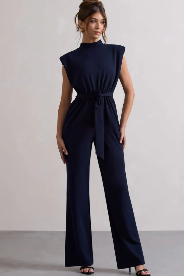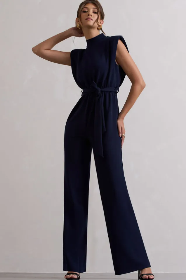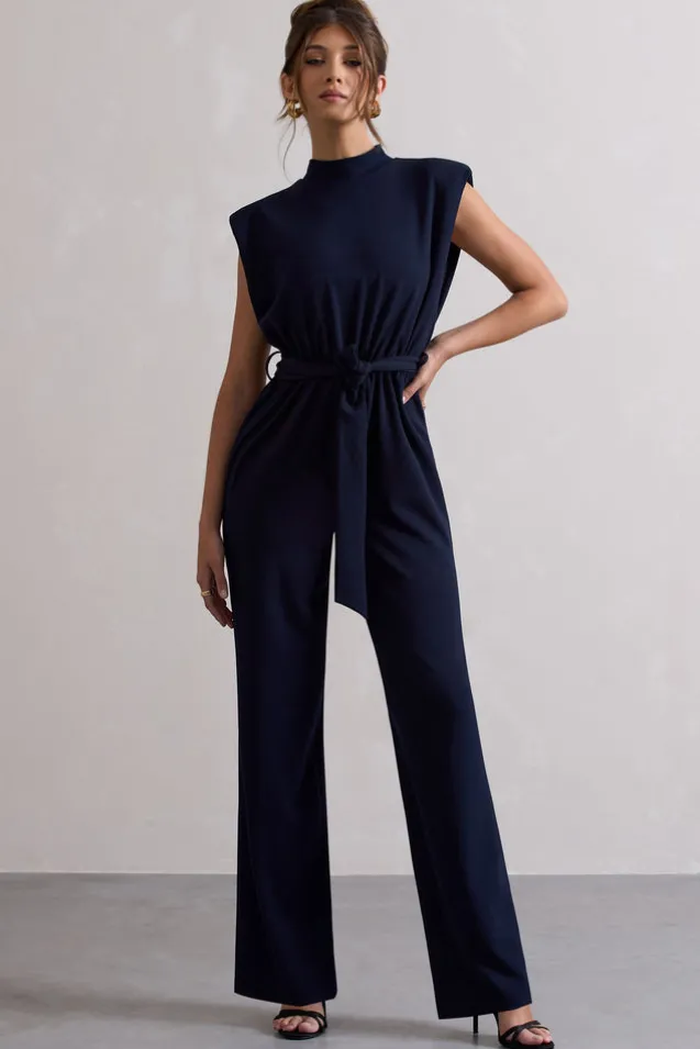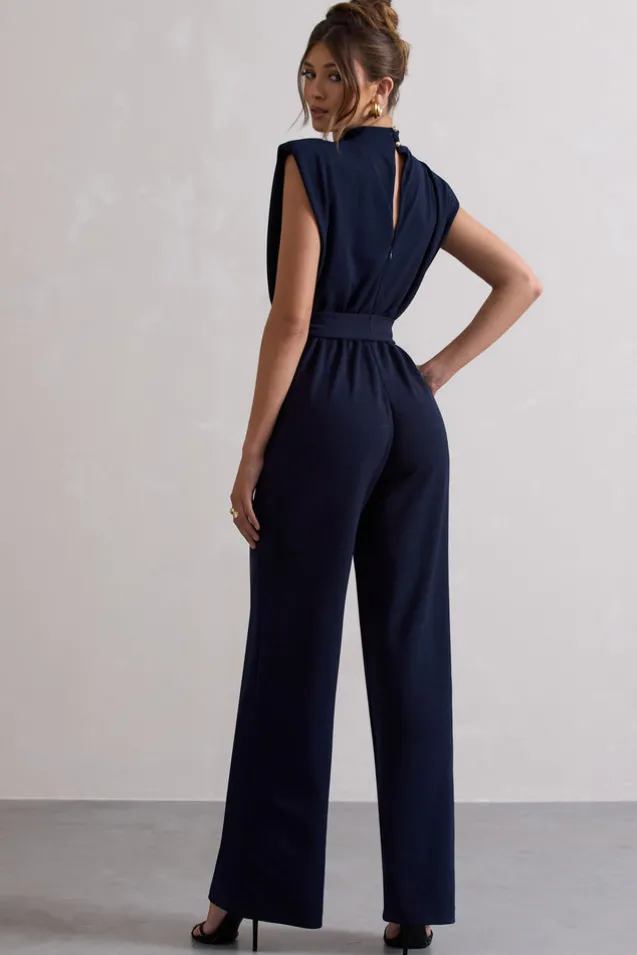 Kalona | Navy High-Neck Wide-Leg Jumpsuit With Tie Waist