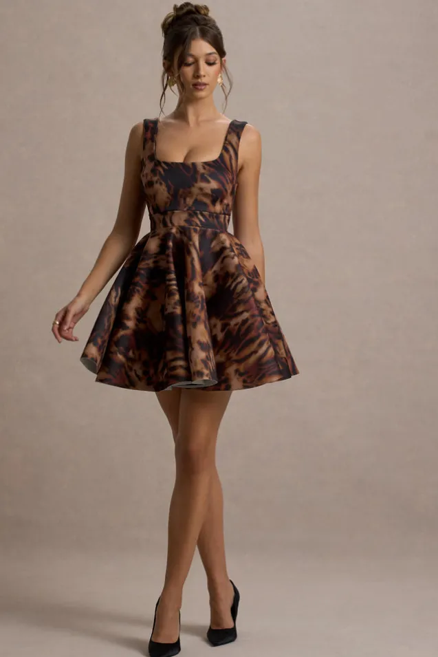 Play with prints in Kamaria, our charming mini dress. Crafted in a flattering scuba crepe, this piece boasts a sculpting scoop neckline, cinched waist and flouncy feminine skater skirt. For the perfect Saturday night ensemble, style yours with some complimenting gold accents. Features – Premium scuba foam- Scoop neckline – Wide shoulder straps- Invisible zip closure – Skater skirt- Mini length Sizing & Fit Model is 5’6.5 and wears UK size 8/US size 4 Product Information Designed exclusively by Club L London Lined with some stretch Premium scuba crepe & scuba foam in Animal Print (92% Polyester, 8% Elastane) 85cm total length