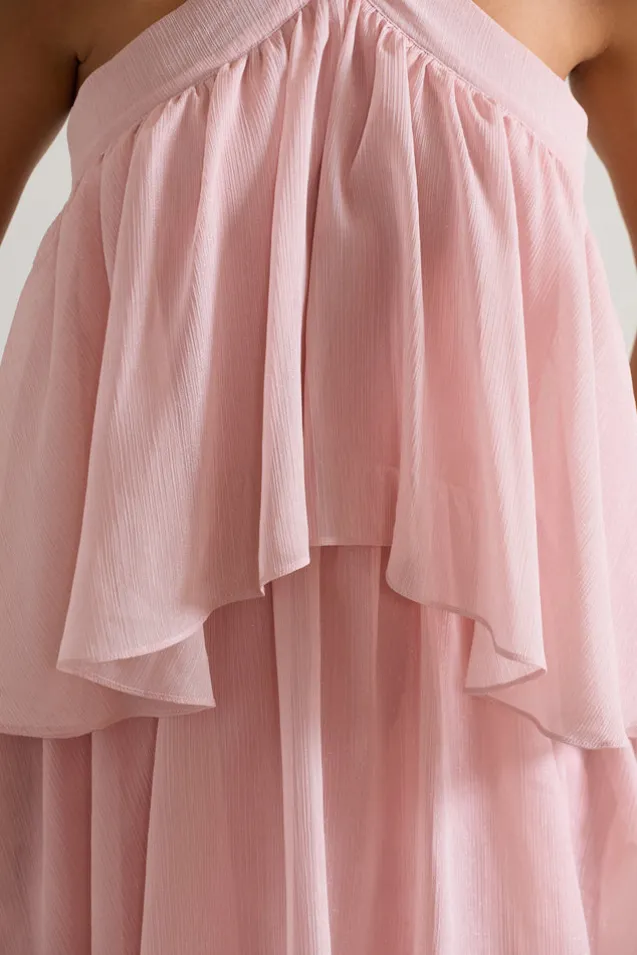 Kassiah | Light Pink Halter-Neck Ruffle Maxi Dress