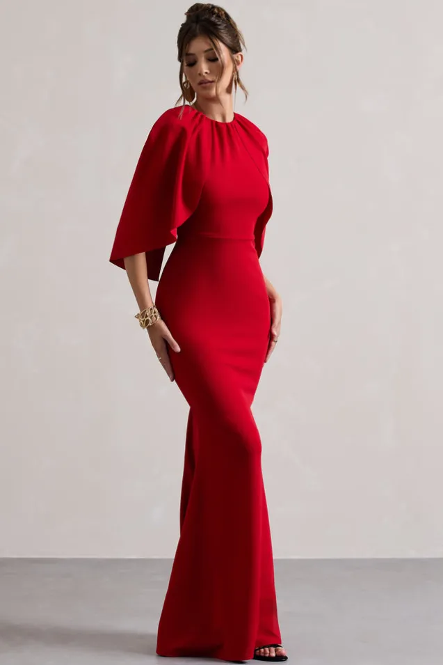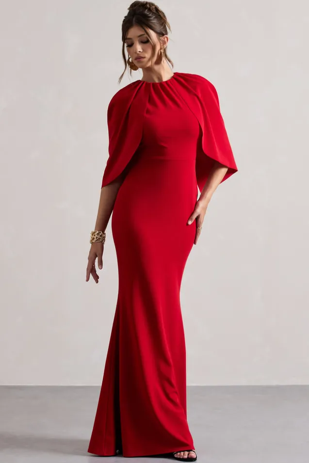 Event season calls for a dress like Kianne. This maxi arrive in a statement red shade of our classic scuba crepe that gives the perfect curve-accentuating fit. Kianne is defined by its short cape sleeves that add a touch of elegance to this bold maxi dress. Features – Premium scuba crepe- Bodycon fit – Crew neckline – Short cape sleeves- Invisible zip closure- Maxi length Sizing & Fit Model is 5’7 and wears UK size 8/US size 4Product Information Designed exclusively by Club L London Double layered with good stretch Premium scuba crepe in Red (95% Polyester, 5% Elastane) 155cm total length