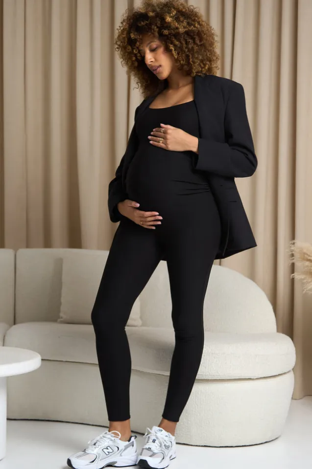 Kim | Black Strappy Skinny-Leg Maternity Unitard