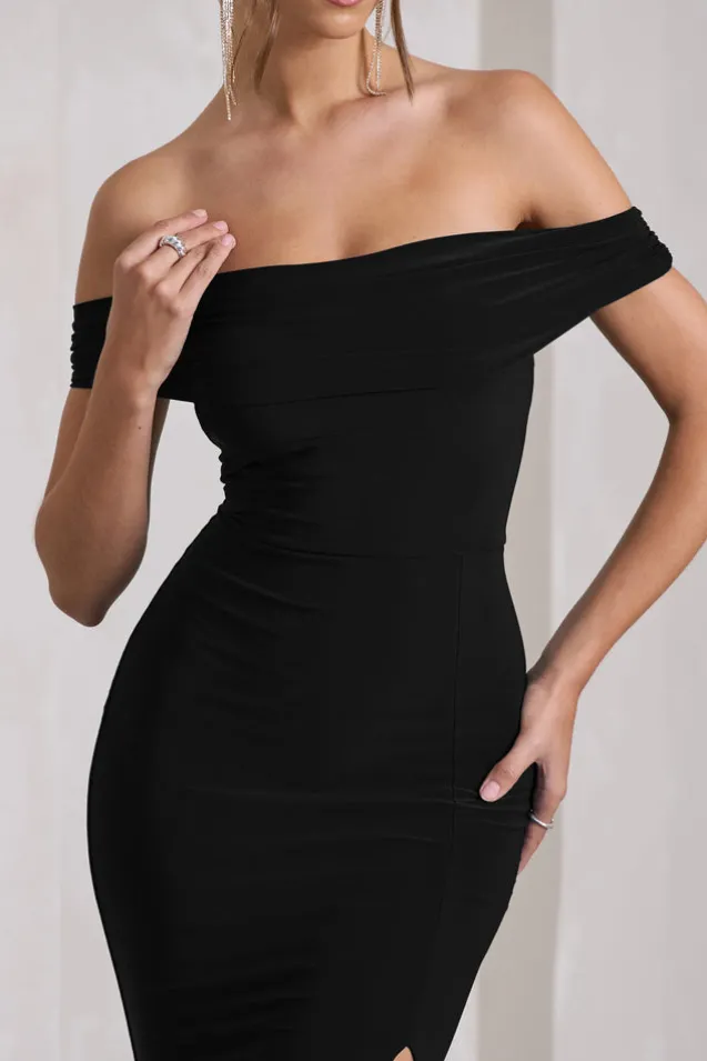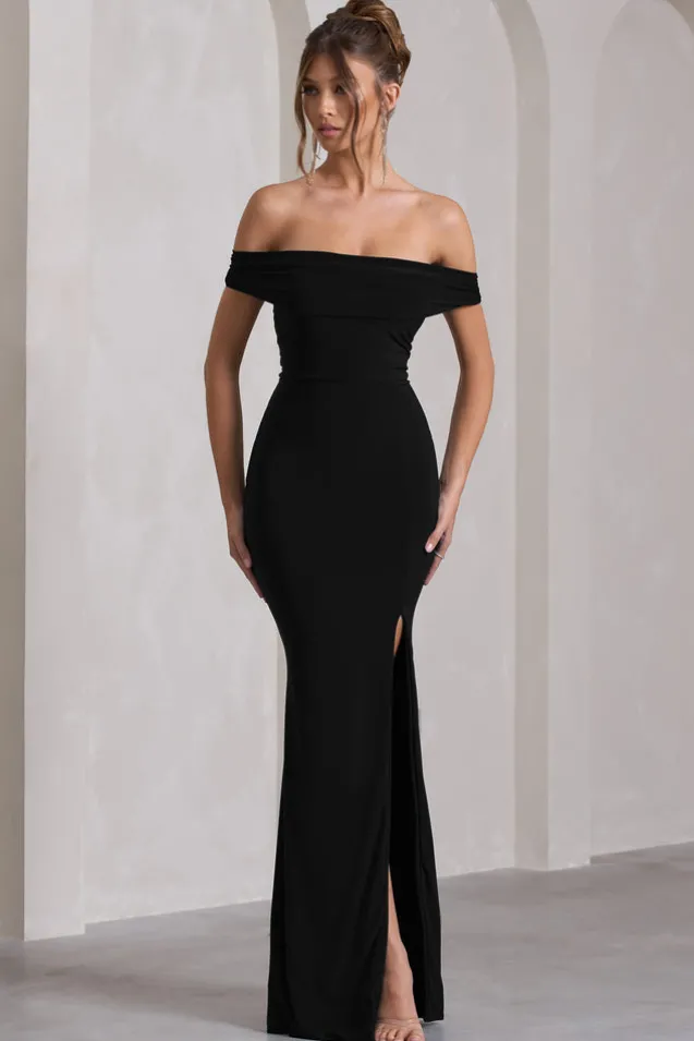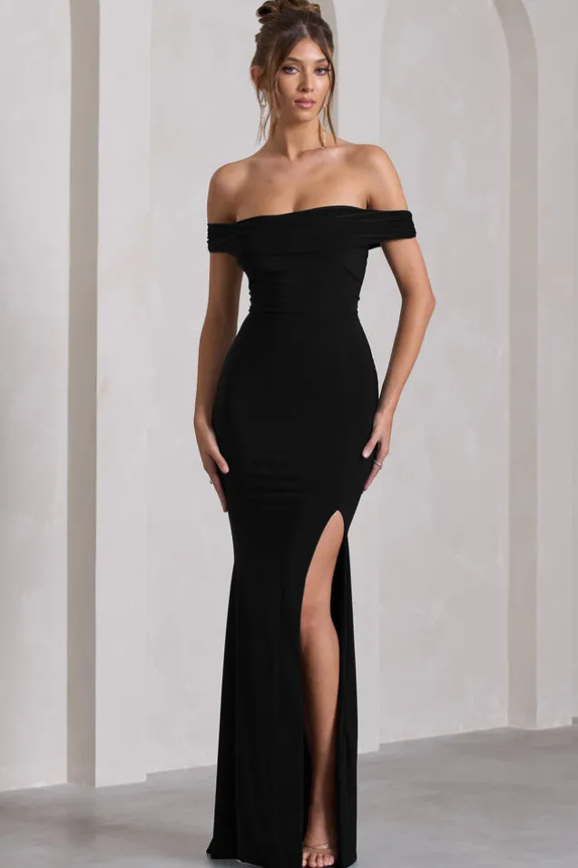 Law of Attraction | Black Bardot Draped Split Maxi Dress