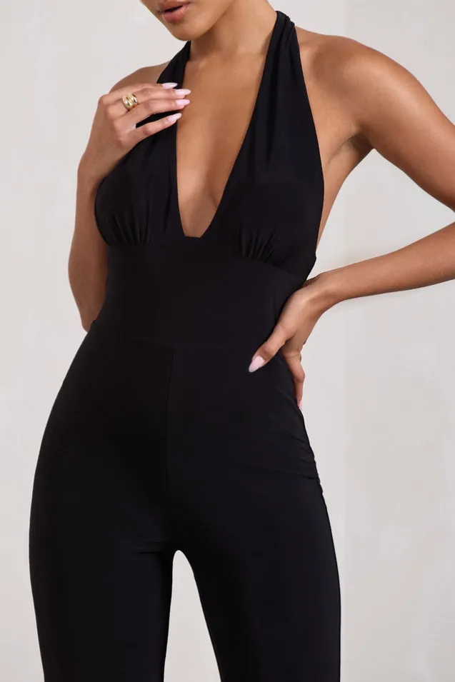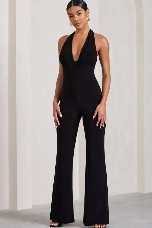 Lexie | Black Halter-Neck Sleeveless Flared-Leg Jumpsuit