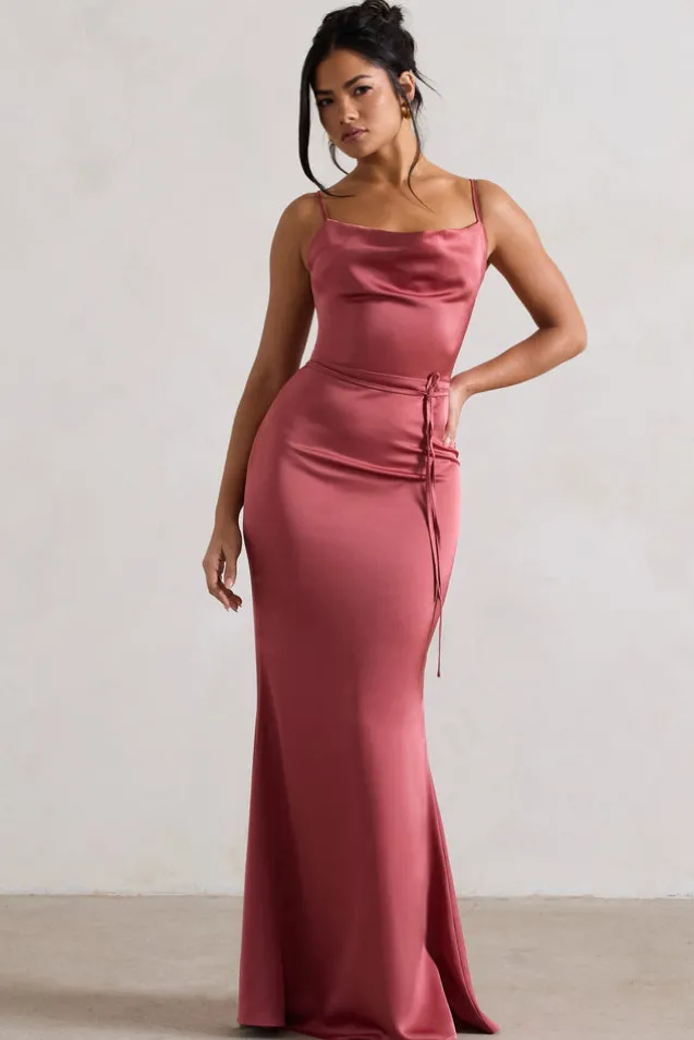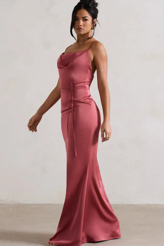 Lifetime | Rose Pink Satin Cowl Neck Maxi Dress With Cross Back Detail