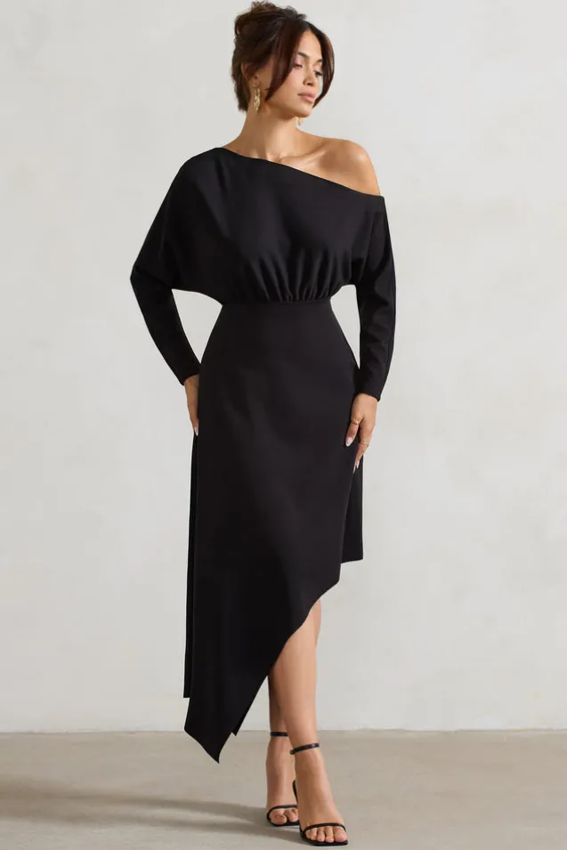 Lori | Black Asymmetric Long-Sleeve Maxi Dress