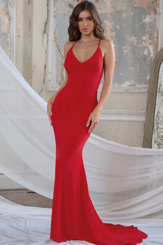 Lucky Number | Red Cross Back Fishtail Maxi Dress