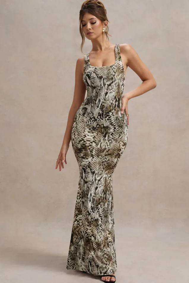 Mahina | Snake Print Square-Neck Maxi Dress