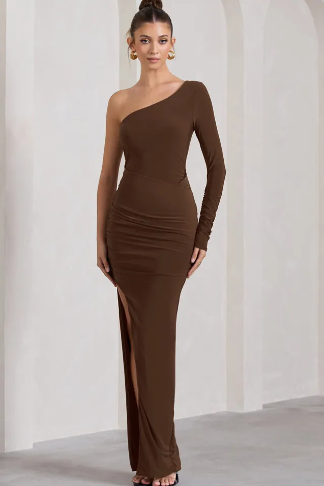 Mallory | Chocolate Brown Asymmetric Split Maxi Dress