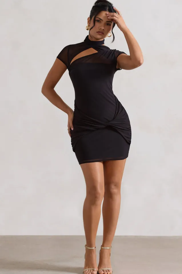 Mandi | Black Mesh Halter-Neck Cut-Out Mini Dress