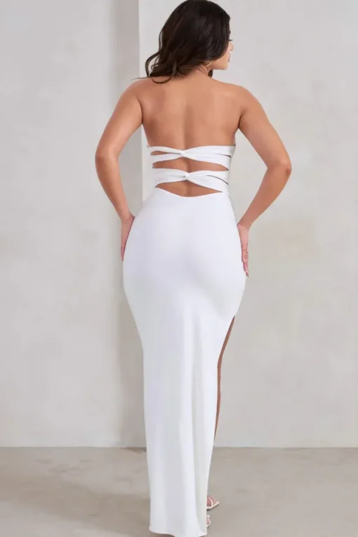 Manon | White Sweetheart Bandeau Maxi Dress With Thigh Split
