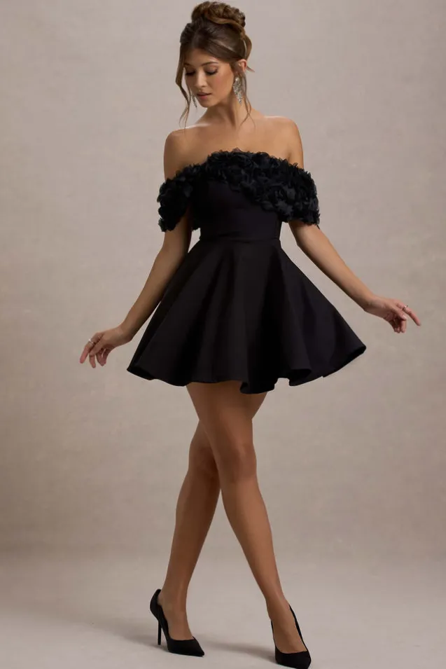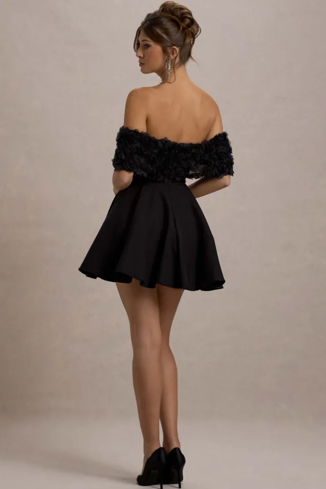 Micro Muse | Black Floral Bardot Mini Dress