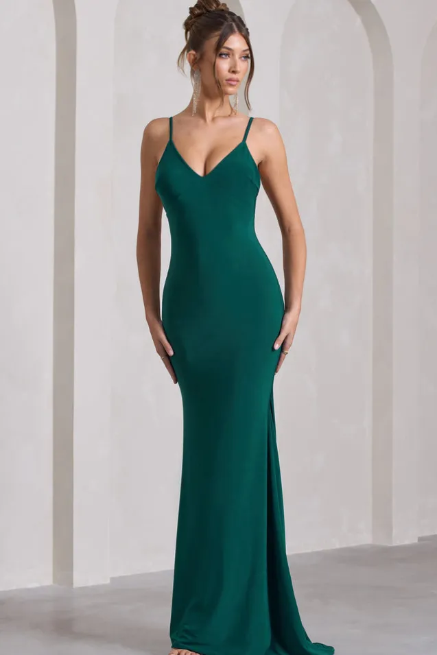 Naya | Bottle Green Strappy V-Neck Fishtail Maxi Dress