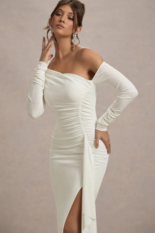 Nerina | Cream Asymmetric Long-Sleeve Split Maxi Dress