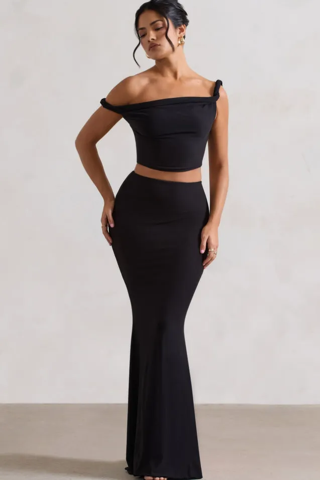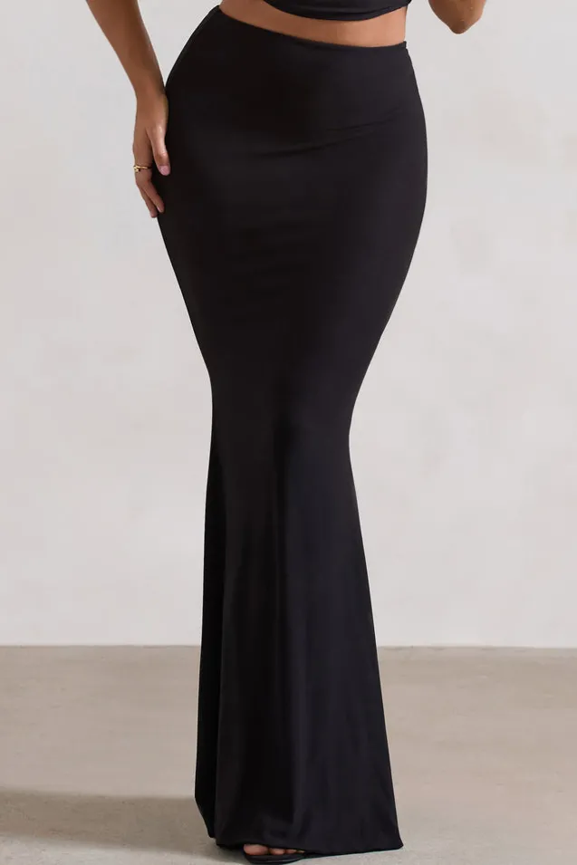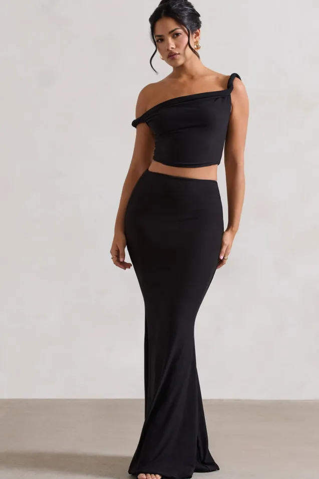 Every wardrobe needs a staple maxi skirt like Neve. Crafted in our super-soft stretch jersey, this staple boasts a figure-flattering asymmetric design that enhances your natural waistline. Features – Premium stretch jersey- Asymmetric waistline- Maxi length Sizing & Fit Model is 5’6 and wears UK size 8/US size 4 Product Information Designed exclusively by Club L London Double layered with good stretch Premium jersey in Black (95% Polyester, 5% Elastane) 112cm total length
