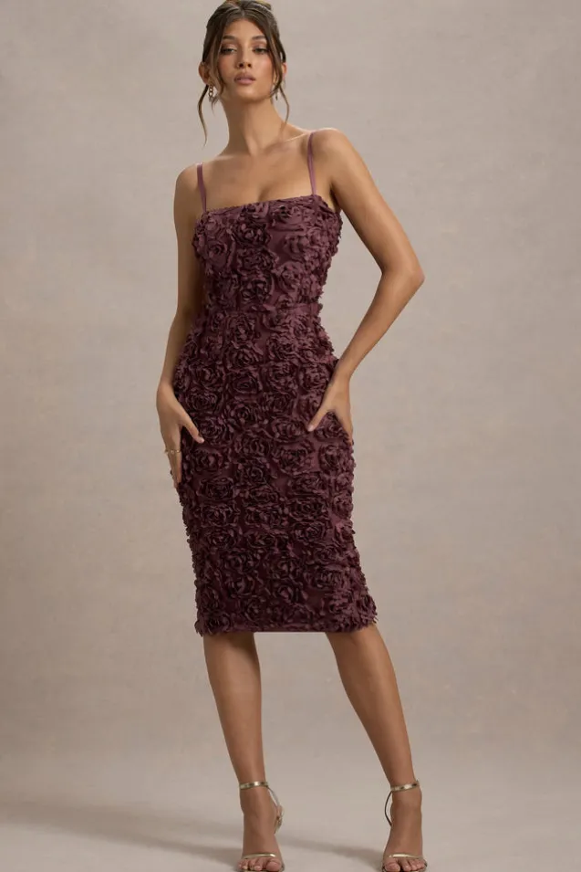 Romantic and refined, New Love is your go-to for a statement-making moment. Designed in a captivating dark mauve hue, this strappy midi dress is adorned with delicate 3D mesh flowers, creating an enchanting textural effect. The premium mesh fabric hugs your silhouette, while the intricate floral detailing adds a feminine touch. Elevate your look for your next event with soft waves and metallic heels.Features – Premium mesh and 3D floral- Bodycon fit- Adjustable straps- Square neckline- Mesh floral details- Invisible zip closure- Lace up back- Midi length Sizing & Fit Model is 5’7 and wears UK size 8/US size 4 Product Information Designed exclusively by Club L London Fully lined with no stretch Premium mesh and 3D floral in Dark Mauve (100% Polyester)120cm total length