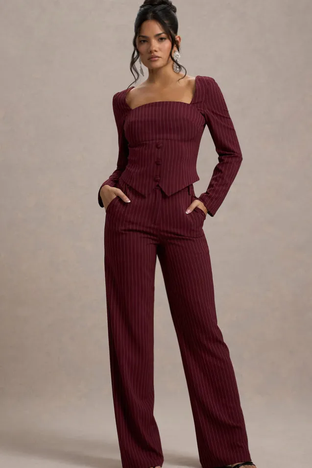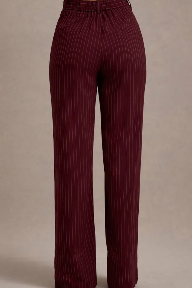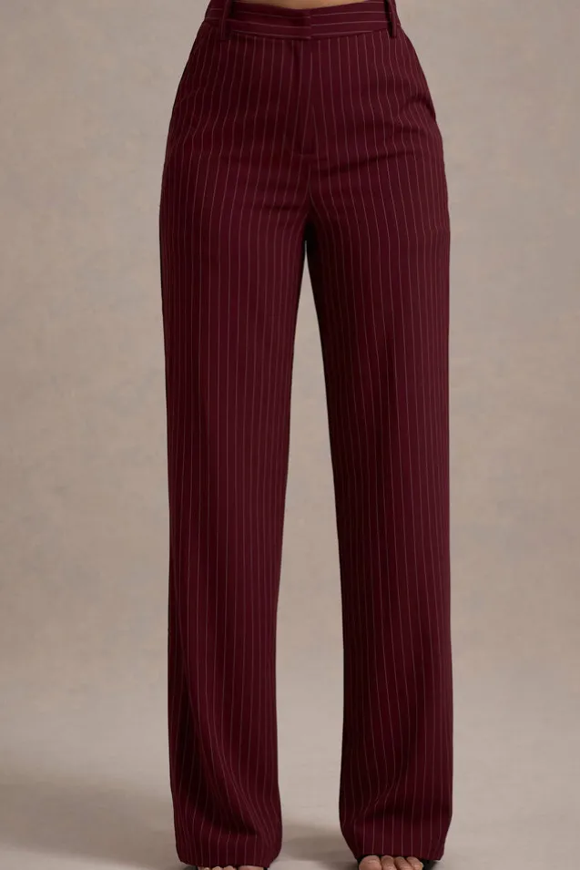 New York | Wine Pinstripe Tailored Wide-Leg Trousers