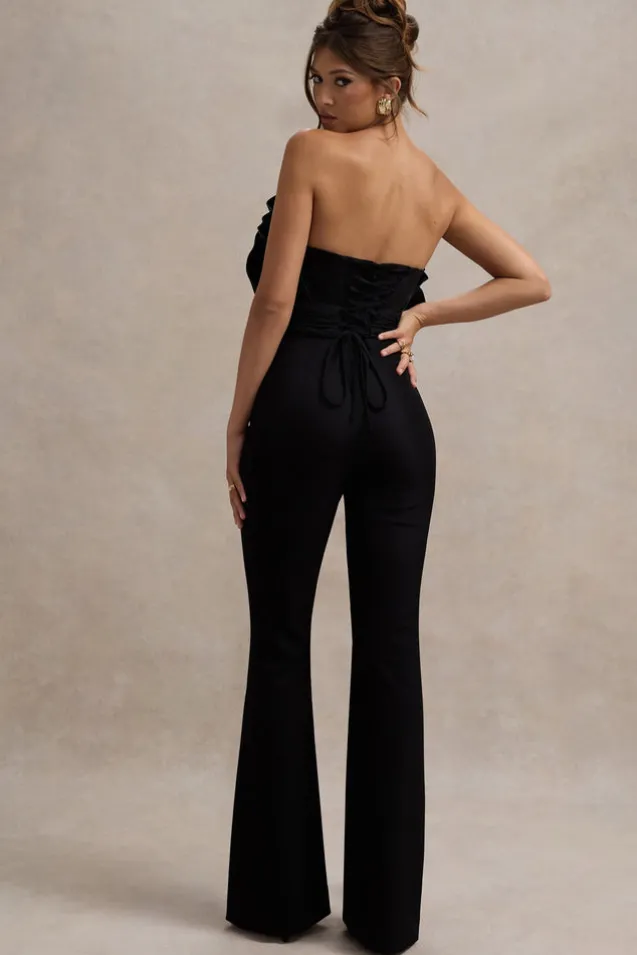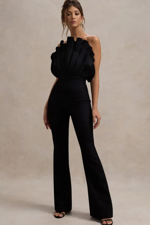 Nicia | Black Ruffled Strapless Flared-Leg Jumpsuit
