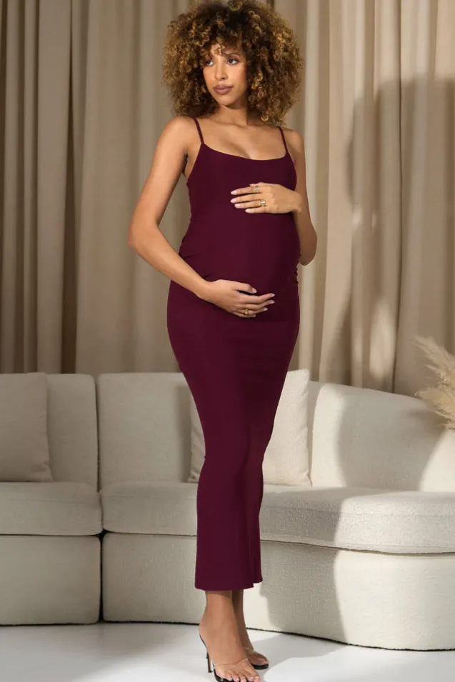Oakley | Burgundy Strappy Square-Neck Split Maternity Maxi Dress