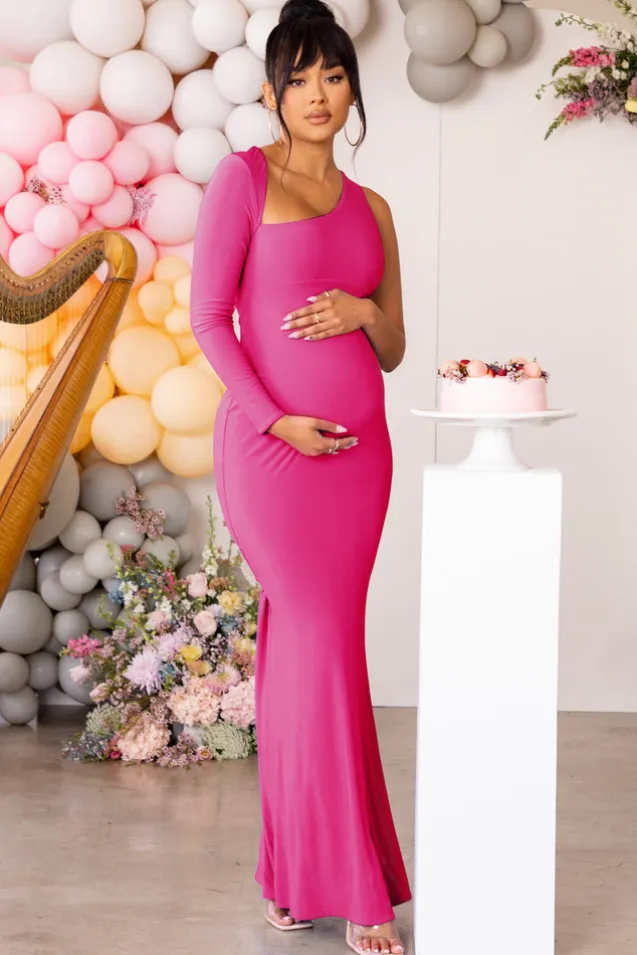 Oh Baby | Hot Pink Maternity One Shoulder Bodycon Maxi Dress