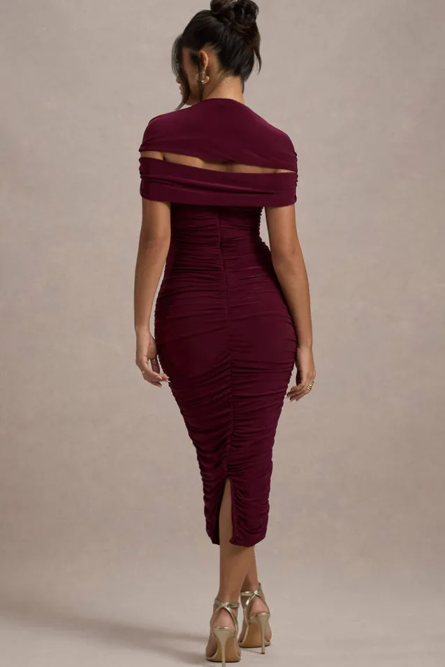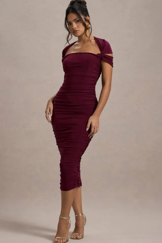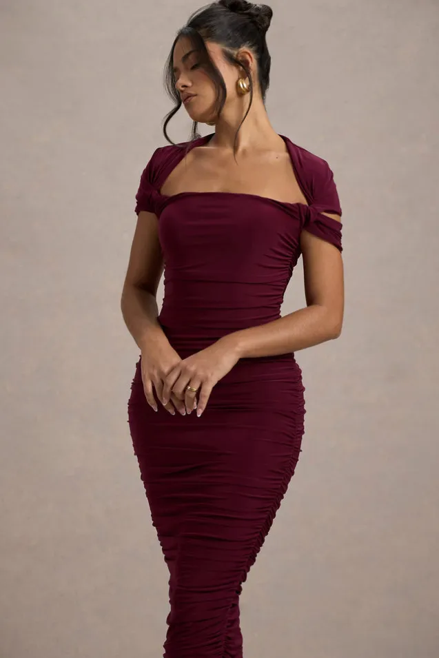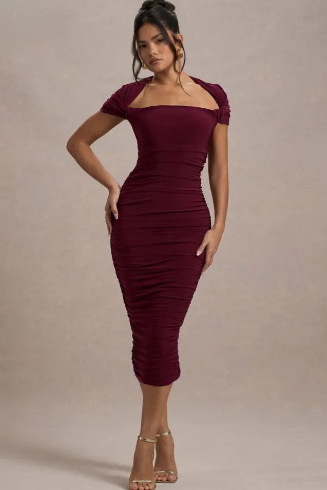 Paxos | Burgundy Ruched Short-Sleeve Midi Dress