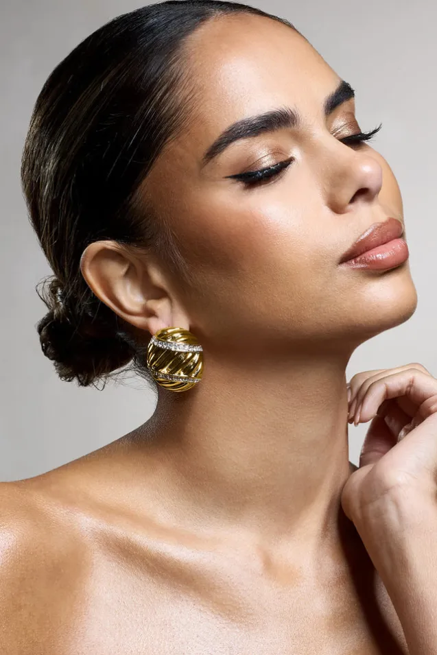 Opt for a classic look in Peridot, our latest statement earrings. Defined by their elegant oval design and sparkling diamante embellishments, complete with a stud fastening keep Peridot at the forefront with a sleek bun.Features – Gold toned- Diamante embellishments- Oval design- Stud fasteningProduct Information Designed exclusively by Club L LondonGold-toned brass (60% Brass, 40% Glass)