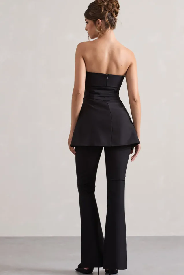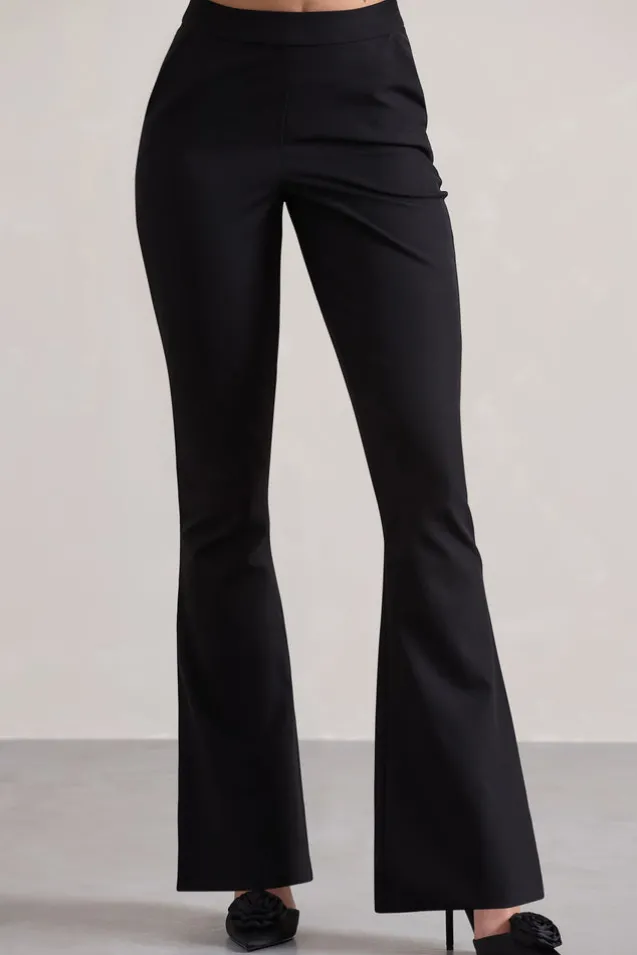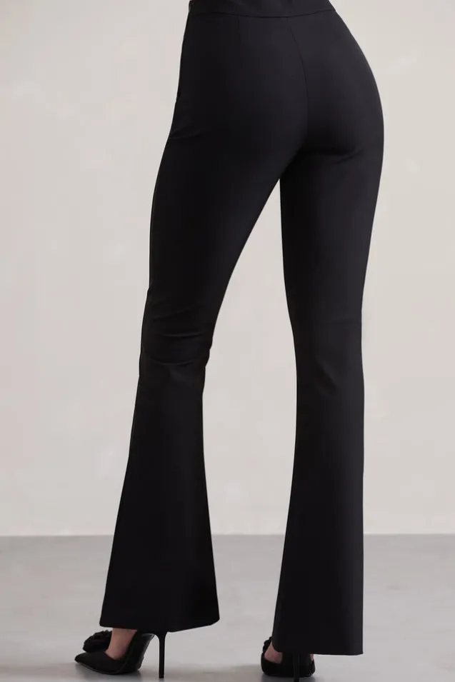 Walk with Purpose, our latest black flared trousers. Crafted in a premium crepe these high-waisted trousers are an ultra flattering look for any occasion. Pair Purpose with our black Success top to complete your look. Features – Premium crepe- High-waisted- Concealed hook & bar closure – Flared-legSizing & Fit Model is 5’7 and wears UK size 8/US size 4Product Information Designed exclusively by Club L London Fully lined with some stretch Premium crepe in Black (86% Polyamide, 14% Elastane) 84cm total leg length