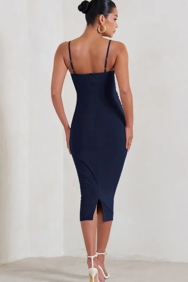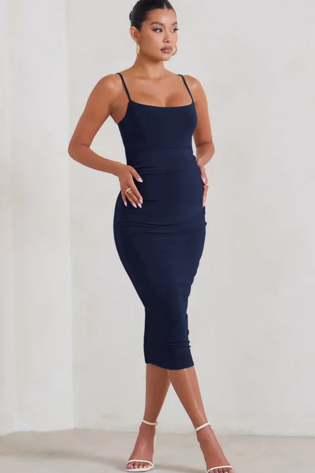 Raquel | Navy Maternity Cami Midi Dress With Split